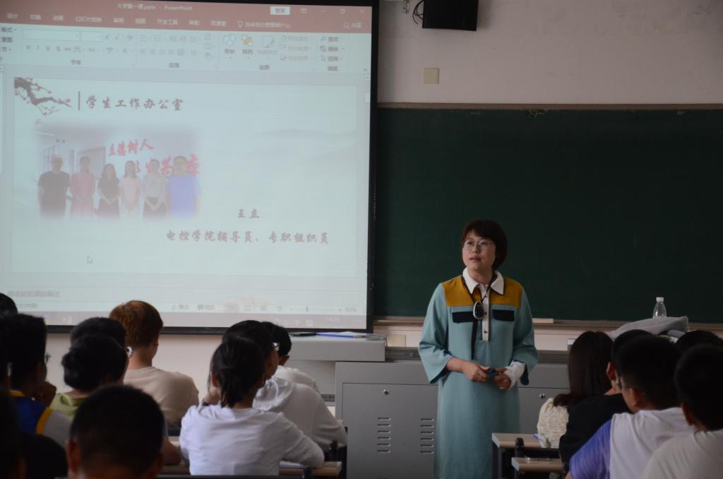 两位辅导员老师分别从“我是谁”,“大学生活什么样”,“如果度过大学生活”三个方面为同学们介绍学校情况及校园环境,并详细解读了《学生手册》相关规定,教导学生严格遵守校规校纪、考风考纪,同时举出反例告诫同学们凡事要三思而后行。