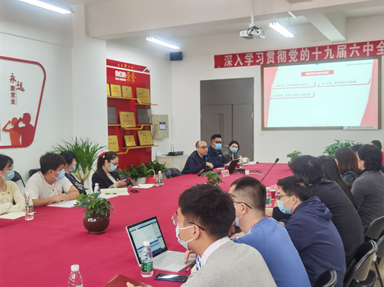 阎光耀同志以习近平总书记的讲话带入主题,围绕“新发展阶段、新发展理念与高质量发展”、“依托新一轮科技产业革命促进创新协调绿色发展”、“适应百年未有之大变局构建新发展格局”、“在共享发展中实现全体人民共同富裕”等四个方面进行有关习近平经济思想的领学。与会党员纷纷表示,在当前形势下,学习运用习近平经济思想对于我们开展教学和思想政治工作意义重大,习近平经济思想的深刻内涵可以指导我们把握当前国际国内经济政治新变化,回答学生关注的时政问题,更好地服务立德树人根本任务。