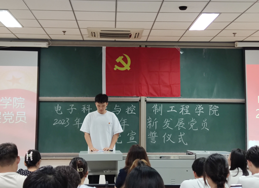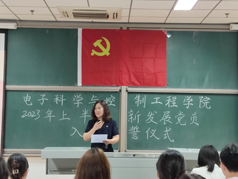 6月19日下午,奥门新浦京官网在天仪楼210开展2023年上半年新发展党员入党宣誓仪式,学院党总支书记贾甚杰、学生党支部书记朱桃花、郭越以及我院全体学生党员参加此次活动。