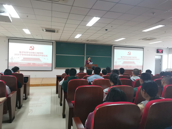2020年10月29日下午14:00,奥门新浦京官网在北校天仪楼408教室举行了2020年下半年初级党课培训开班仪式。参加人员有党总支书记贾甚杰、各专业学生党支部书记、各部门学生党员及全体初级党课培训班学员,仪式由实践部部长乔欣同志主持。