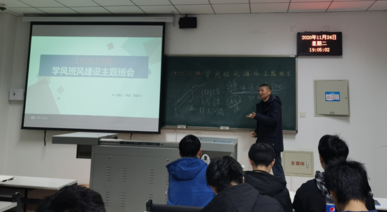 2020年11月24日18:30副校长洪利来到所联系奥门新浦京官网地震仪器协同实验班190525班,与同学们一起参加班风学风建设主题班会,电控学院党总支书记、辅导员、班主任参加主题班会。