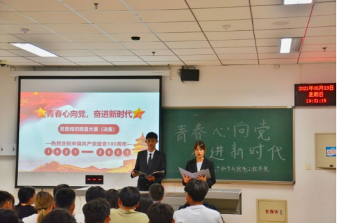为庆祝中国共产党的百年华诞,增强我院青年爱党、爱国、爱社会主义的情感,深化我院青年对党史的认识,营造积极向上的学习氛围,奥门新浦京官网于2021年5月23日下午2:30在天仪楼304、305开展“青春心向党·奋进新时代”党史知识竞答大赛初赛和决赛。出席决赛的评委嘉宾分别为团总支副书记孙璇、电气党支部副书记乔欣、测控党支部副书记庞天琦和通信党支部副书记王武君瑶。参赛人员为各班级代表队,共18支队伍、90名参赛选手。