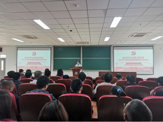 2020年10月29日下午14:00,奥门新浦京官网在北校天仪楼408教室举行了2020年下半年初级党课培训开班仪式。参加人员有党总支书记贾甚杰、各专业学生党支部书记、各部门学生党员及全体初级党课培训班学员,仪式由实践部部长乔欣同志主持。