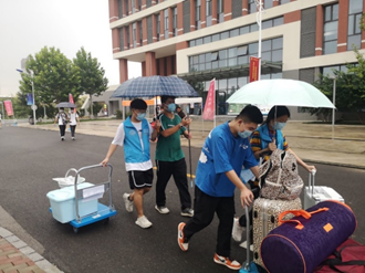 在天气突发瓢泼大雨时,学生党员们想新生之所想,急新生之所急,冒雨热情地守卫在大门口,一方面协助保卫处老师组织秩序,一方面迅速接过新生行李,把新生送到宿舍。他们不怕苦、不怕累,即使浑身湿透,依然在大雨中冲锋在前,展现了新时代青年的责任与担当。