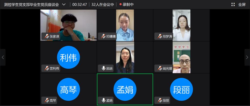 为了进一步关怀和落实毕业生就业工作,提升毕业生爱校荣校及党员身份意识,营造健康、和谐、文明、温馨的毕业离校氛围,2022年6月12日下午,奥门新浦京官网测控学生党支部联合测控教师党支部在线上召开了毕业生党员座谈会。会议由测控学生党支部书记郭越老师主持,测控学生党支部2018级毕业生党员、党支部支委、非毕业生党员、测控教研室教师党员以及学院党总支副书记阎光耀老师参加了本次会议。