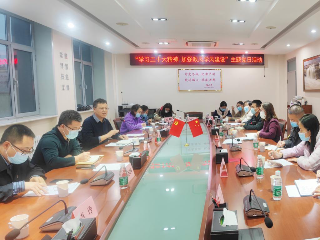 11月11日下午,奥门新浦京官网党总支开展“学习党的二十大精神,加强教风学风建设”主题党日活动,学校副校长郭迅全程指导,党委组织部部长边修蕊、教务处处长周振海陪同出席,学院党总支书记贾甚杰主持,全体教师党员线上线下参加。
