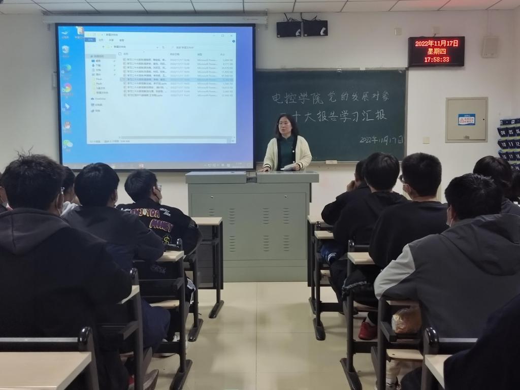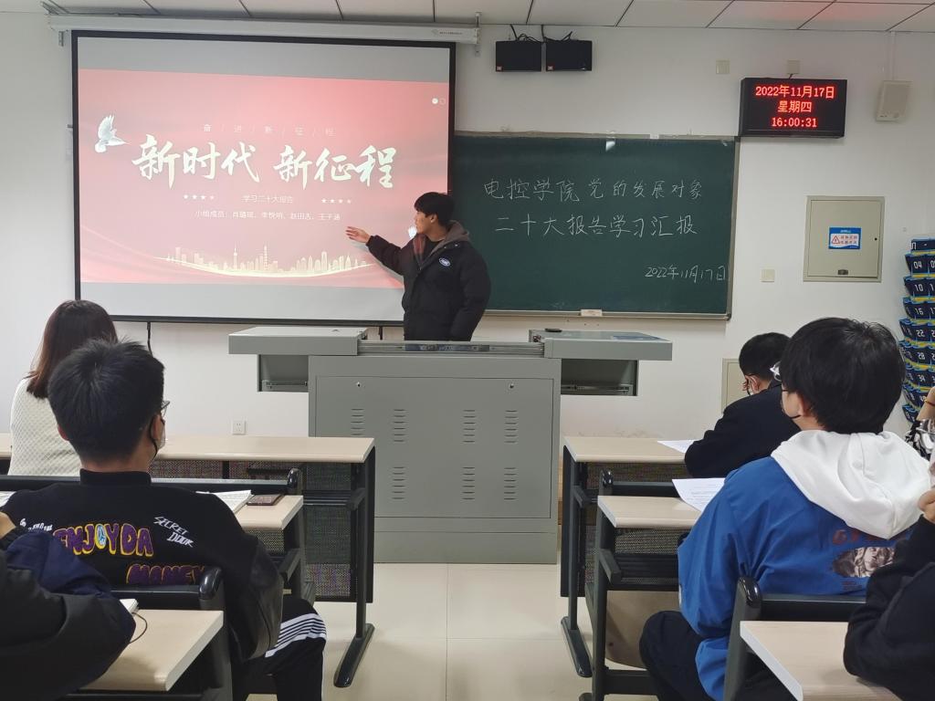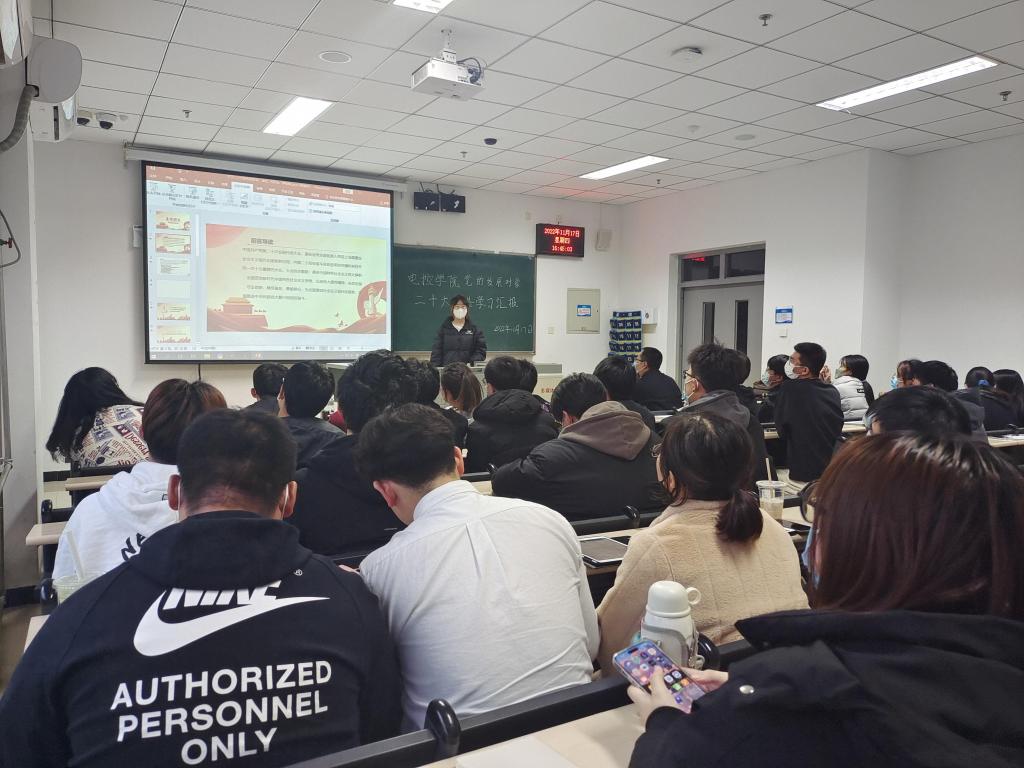 为深入学习领会党的二十大精神,推动党的二十大精神入脑入心,奥门新浦京官网党总支于11月17日16:00在天仪楼113举办了党员发展对象对党的二十大报告学习汇报活动。学院党总支书记贾甚杰、专职组织员王立、通信学生党支部书记胡治国、学生党建办公室负责同志以及全体党员发展对象参加活动,活动由党建办公室副主任王英杰同志主持。