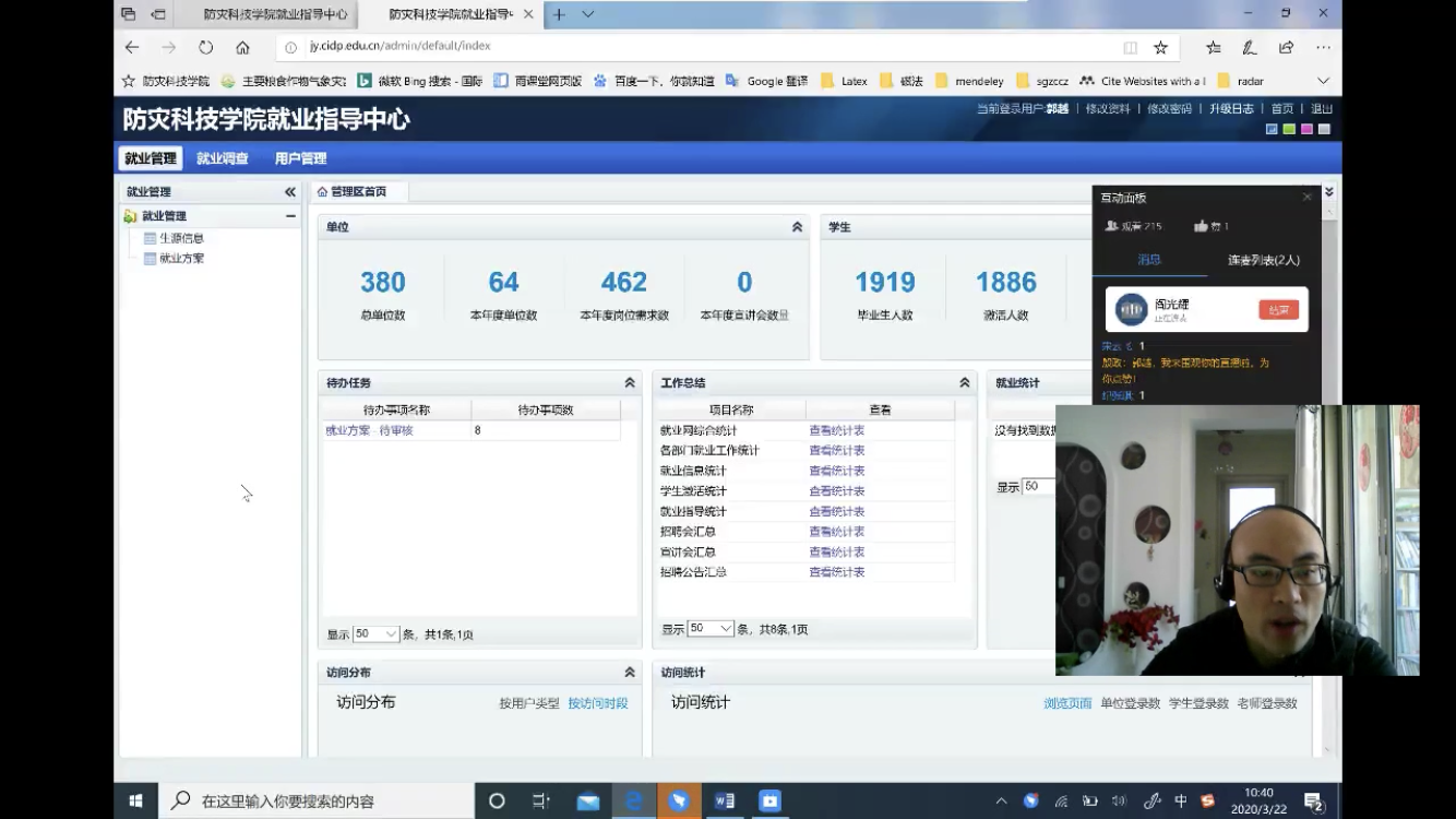 防控就是责任,疫情就是命令。面对疫情的突然来袭,奥门新浦京官网的辅导员们利用寒假休息时间,从“假期模式”转入战“疫”状态,紧张有序地开展各项工作,每天关注疫情数据,摸排学生健康状况,精准掌握学生动态,问候关心学生……在战“疫”中用实际行动守护着学生的生命健康,践行着教师党员的使命担当。
