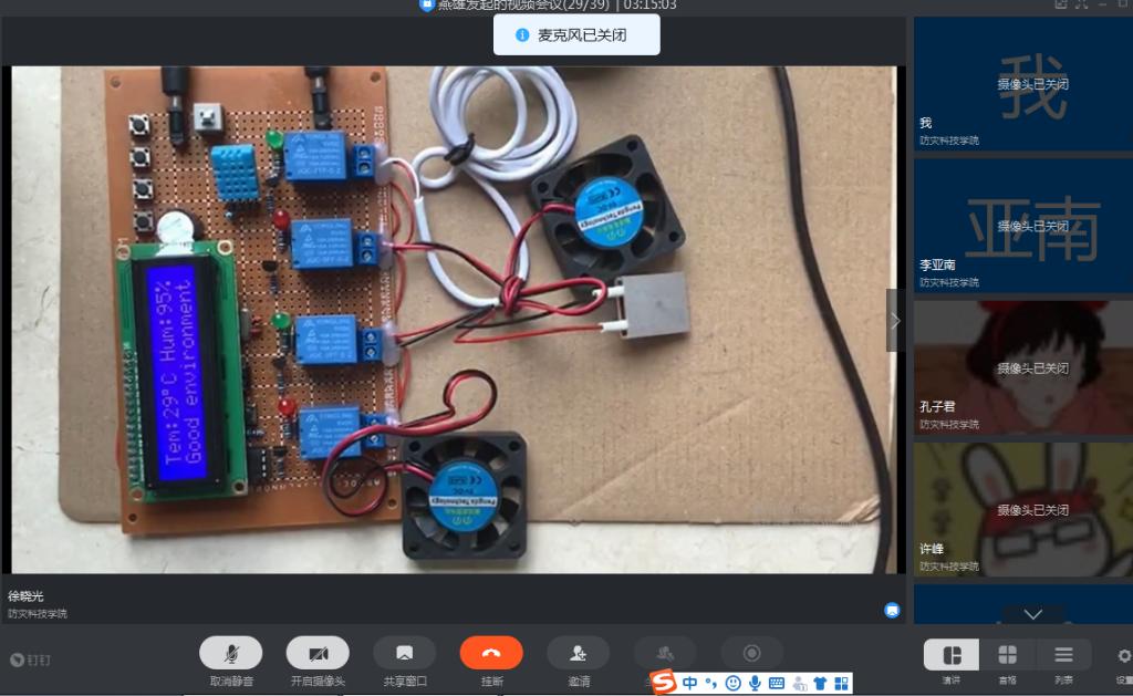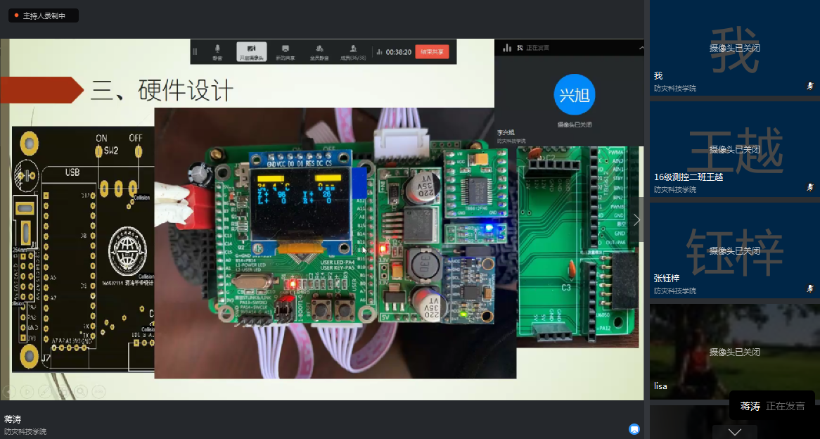 参加答辩的同学依次展示了自己的成果,有的现场进行毕业设计实物演示,有的录制演示视频,有的进行了仿真实验,大部分同学思路较清晰,能较流畅地回答老师所提问题。综合成果展示和答辩情况,绝大部分同学都按照指导教师要求完成了任务,进行了方案设计、硬件设计与软件编程,实物制作与测试,圆满地完成了毕业设计。
