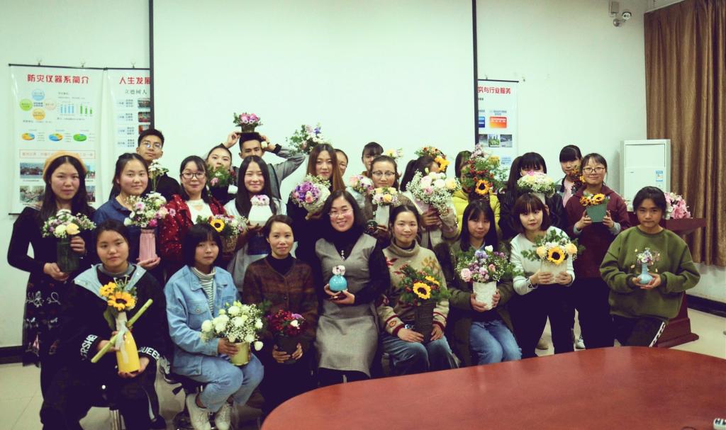 为了帮助我院大学生实现内外兼修的人文素养,促进学生身心健康发展,引导学生合理分配学习与工作时间,最终使其成为新时代的智慧人。奥门新浦京官网团总支·学生会女生部于2018年10月28日、11月4日、11月11日、11月18日在长庚楼420教室依次开展四期智慧女生成长营课程,内容涉及:丝网花的制作,女性的内修与外养,花艺理论课与花艺实践课。授课教师有学院党总支书记贾甚杰老师和燕郊花溆植艺空间雷老师,智慧女生成长营经前期宣传有本院及外院共计近四十人参加。