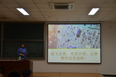 贺秀玲老师首先对通信工程专业做了全面概括和细致介绍,对通信专业“可软可硬”的发展方向和应用型特征进行了论证。接着,她向同学们介绍了我院通信工程专业的人才培养与师资培养现状,展示了专业人才培养的计划,为同学们的大学四年的专业学习给出了详细的规划。最后,贺老师教导同学们应如何充实地度过大学生活:一名优秀的大学生应合理规划时间,确立目标,承担责任,挑战自我。