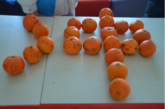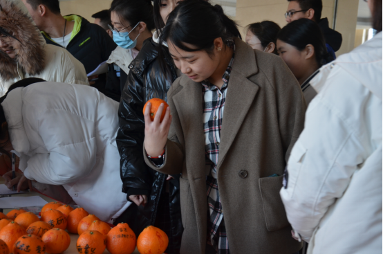 本次活动于中午12点准时开始,参与志愿者身穿蓝色马甲,指引到场的学长学姐们首先挑选祝福橙子,每个橙子上面都写满了考神、必过、上岸、加油等祝福语以及可爱暖心的表情。