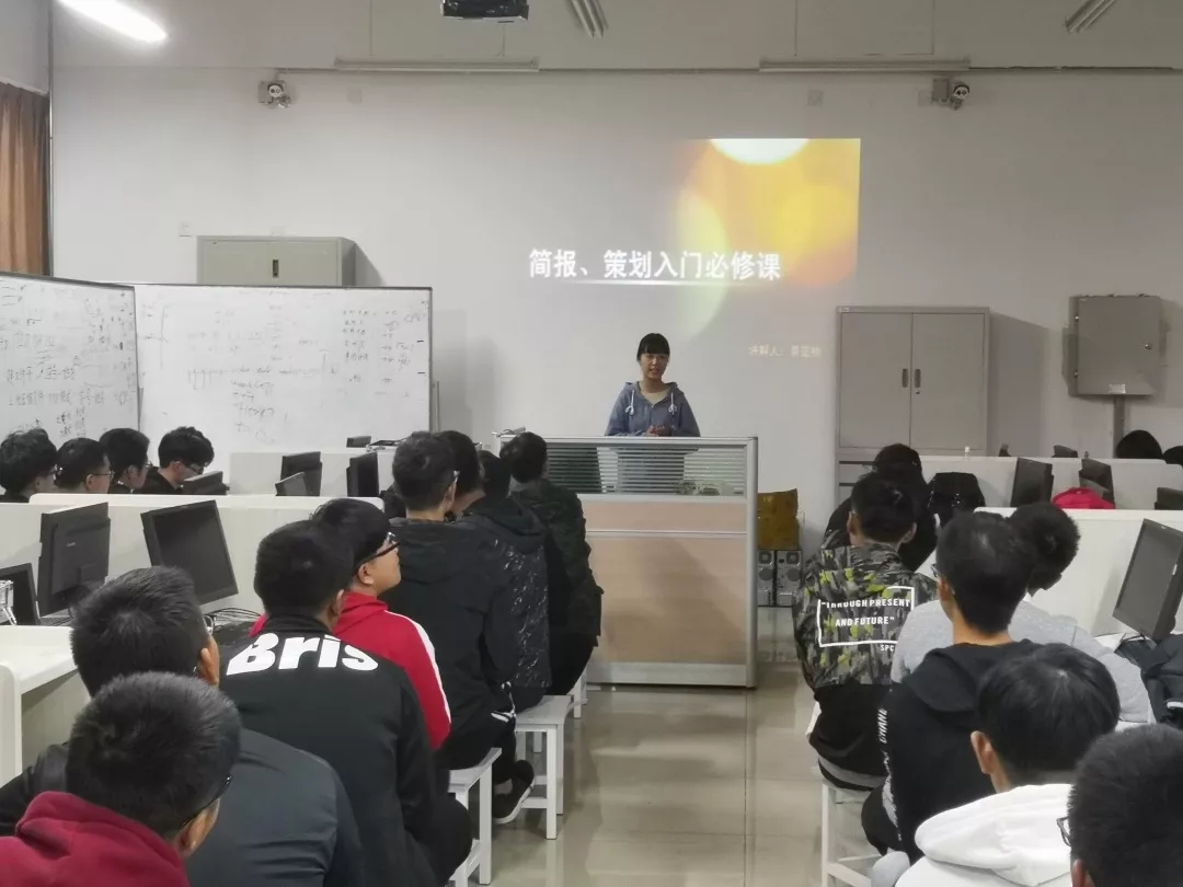 为了提升同学们公文写作能力,提高同学们的办公效率,解决简报和策划中常见的一些格式错误和内容方面的错误。电子青年科技联盟于2018年10月14日下午四点在北校长庚楼414教室开展了新学年第一次第二课堂——“简报和策划培训”,本次活动由电子青年科技联盟通信协会主办,办公室景亚楠同学主讲。