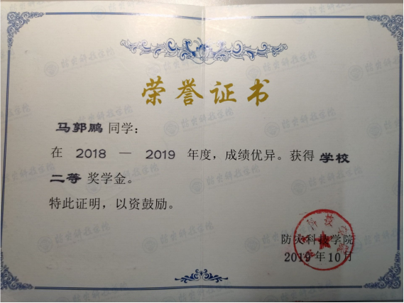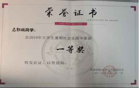 在学习上,他勤奋好学、求真务实,面对难以解决的学习问题,他会在课后向老师请教。同学有不会的问题他也会谦虚的给同学讲解,入学之后就取得了优异的成绩。在大一学年班级成绩名列前茅,在大二学年班级排名稳居前几名,并且综测排名都位于全专业前列,他的努力使他获得了奥门新浦京官网2018-2019学年学校二等奖学金,2019-2020学年学校一等奖学金,电子电工技能大赛二等奖,优秀共青团员,2019年暑假社会实践一等奖等多项奖励与荣誉。